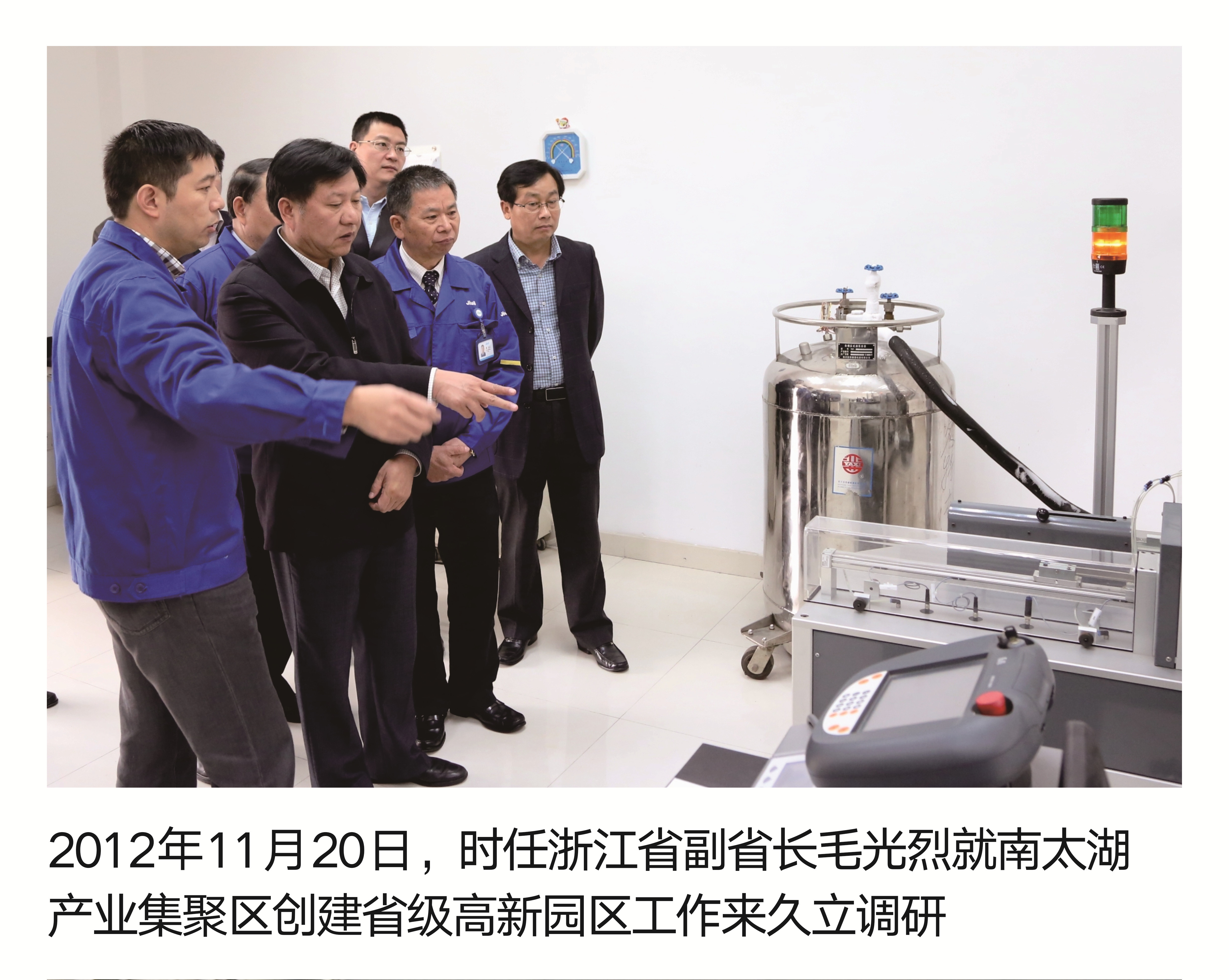 2012年11月20日,時任浙江省副省長毛光烈就南太湖產業(yè)集聚區(qū)創(chuàng)建省級高新園區(qū)工作來久立調研
